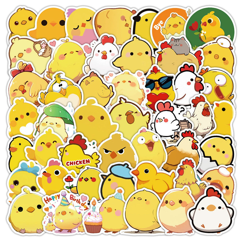 123张萌趣小鸡贴纸卡通黄色咯咯鸡创意动物可爱图案装饰手机壳diy