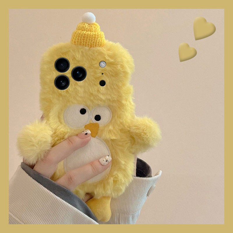刺绣黄色小鸡适用苹果17手机壳苹果16promax毛绒iPhone15秋冬14pro卡通13/12mini冬天11立体xr/xsmax呆萌8套7