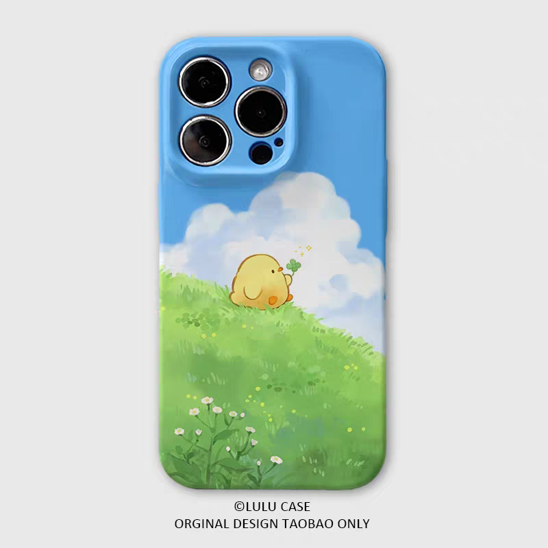 适用于iPhone16Promax青草乐园小黄鸡15pro手机壳14pro卡通xr可爱12mini软壳11高级感15plus小众苹果13promax