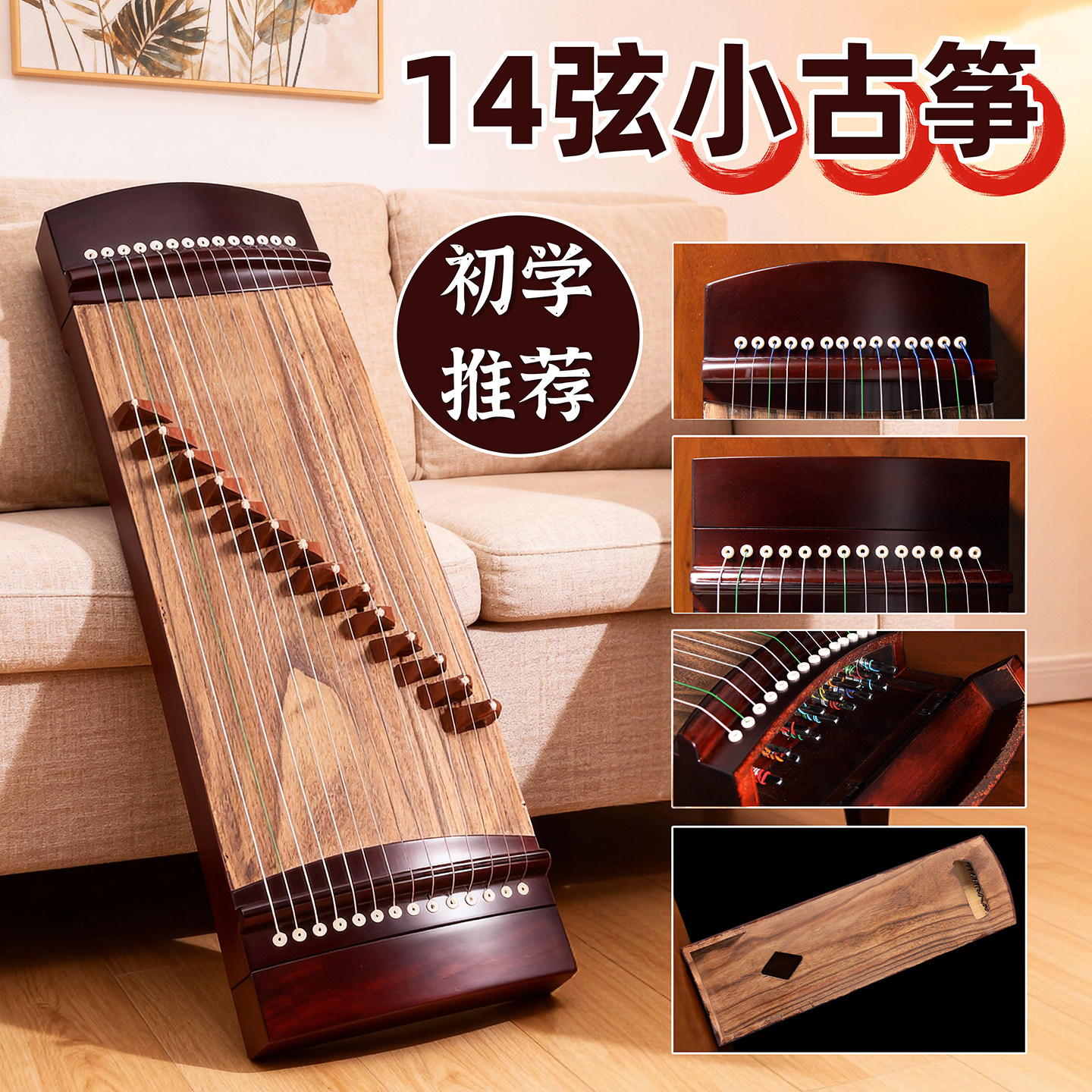 小古筝初学者入门14弦70CM儿童成人专业实木古筝琴便携式小型古筝