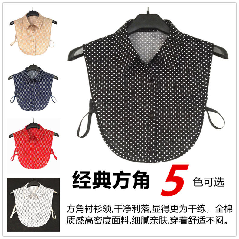 春秋冬季衬衣装饰领纯棉波点百搭假领子女大码衬衫假领假衣领方角