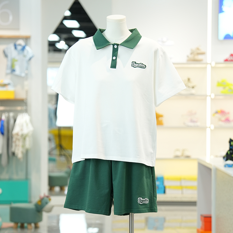 学院风套装韩系女生插色POLO领字母刺绣短袖短裤两件套2025夏季款