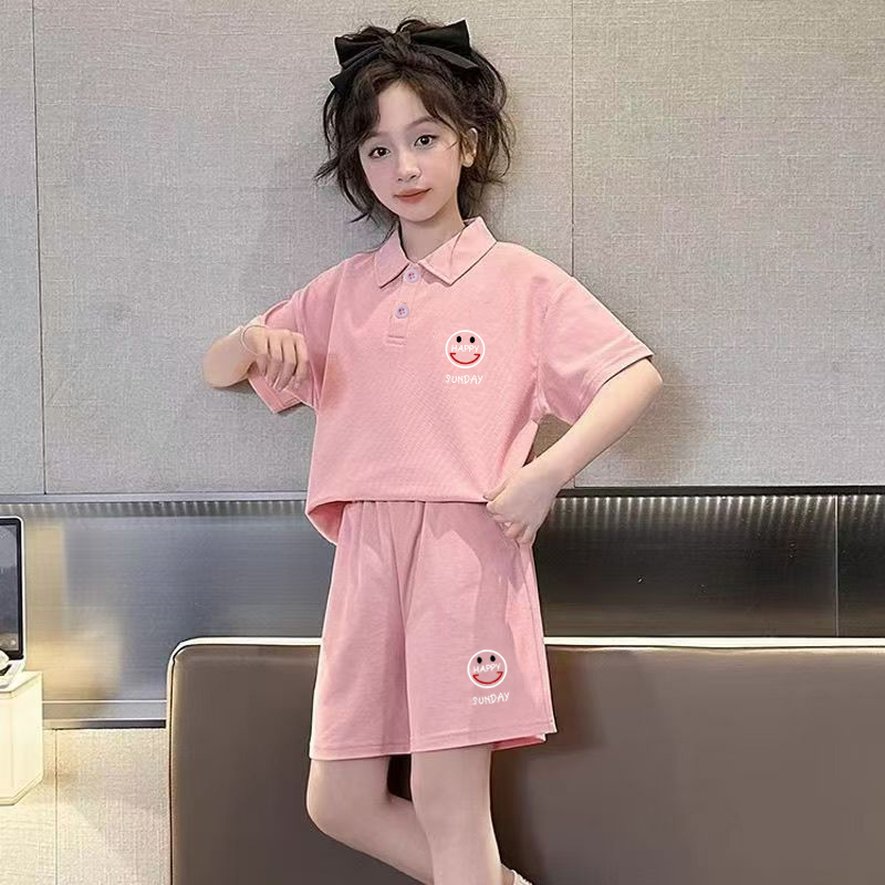 儿童套装2025夏季新款女童polo短袖衬衫女生薄款两件套宽松休闲