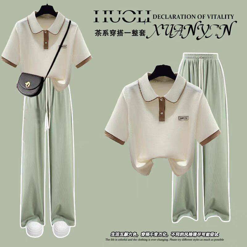 女童夏季套装2025新款运动Polo衫短袖儿童冰丝阔腿裤小个子两件套