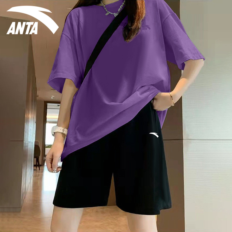 安踏夏季套装女生短袖t恤短裤两件套宽松大码休闲潮流时尚运动服