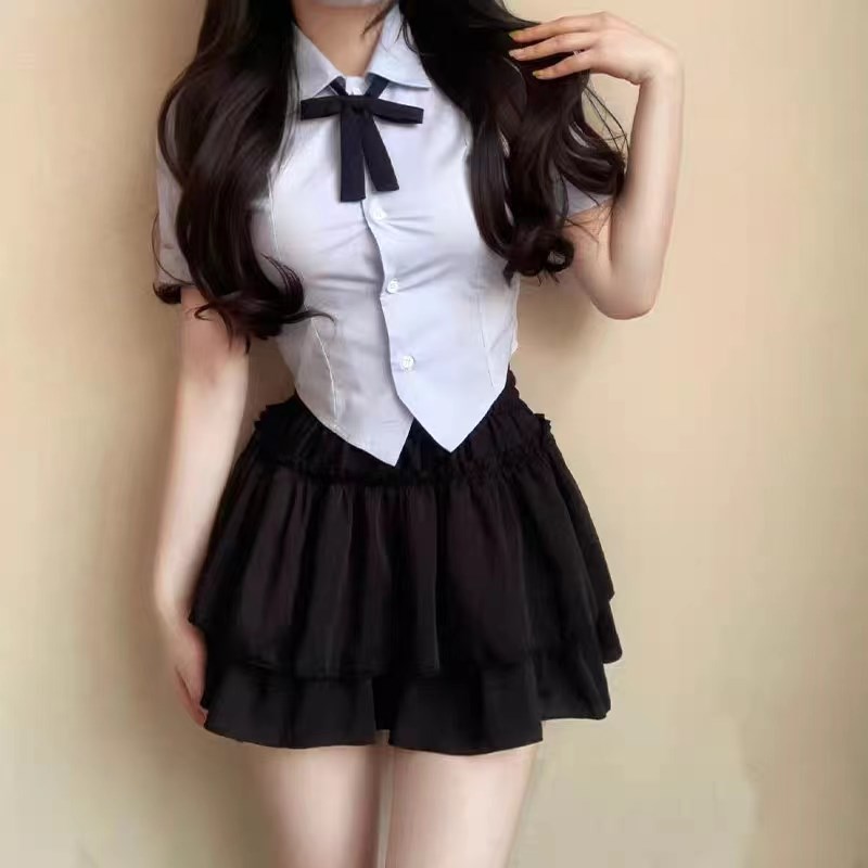 少女大童JK衬衫两件套夏季初中学生甜美上衣服+时尚阔腿裤裙套装