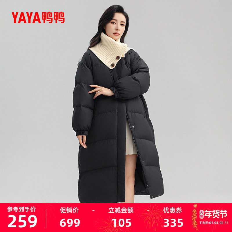 鸭鸭2025年冬季新款羽绒服女气质宽松中长款过膝高级感鸭绒外套M