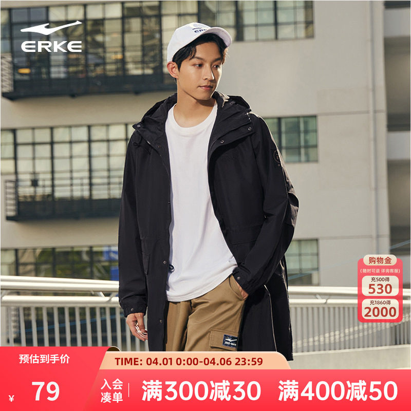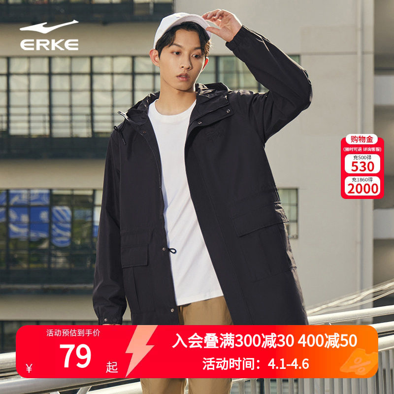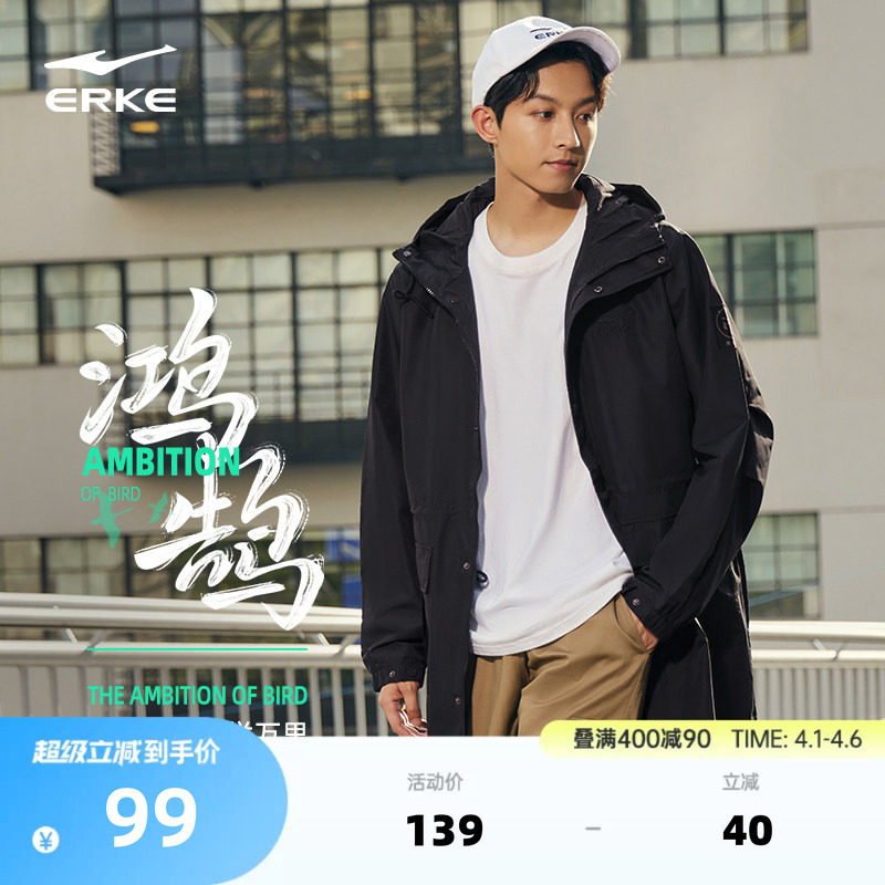 鸿鹄丨鸿星尔克风衣男春季男士国潮复古中长款防风运动外套大衣男