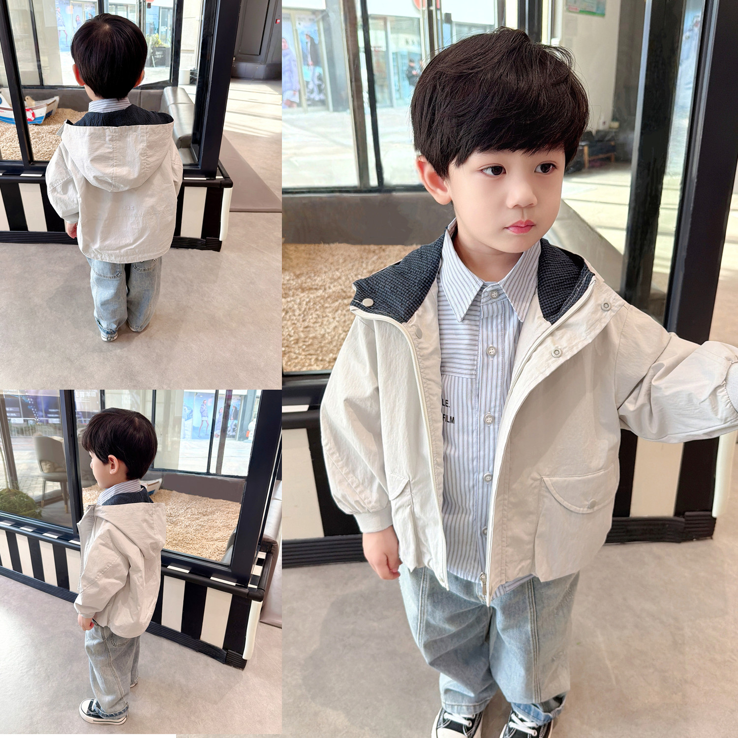 质感好~男童前短后长棉质风衣外套2026春季新款中小童韩版上衣潮