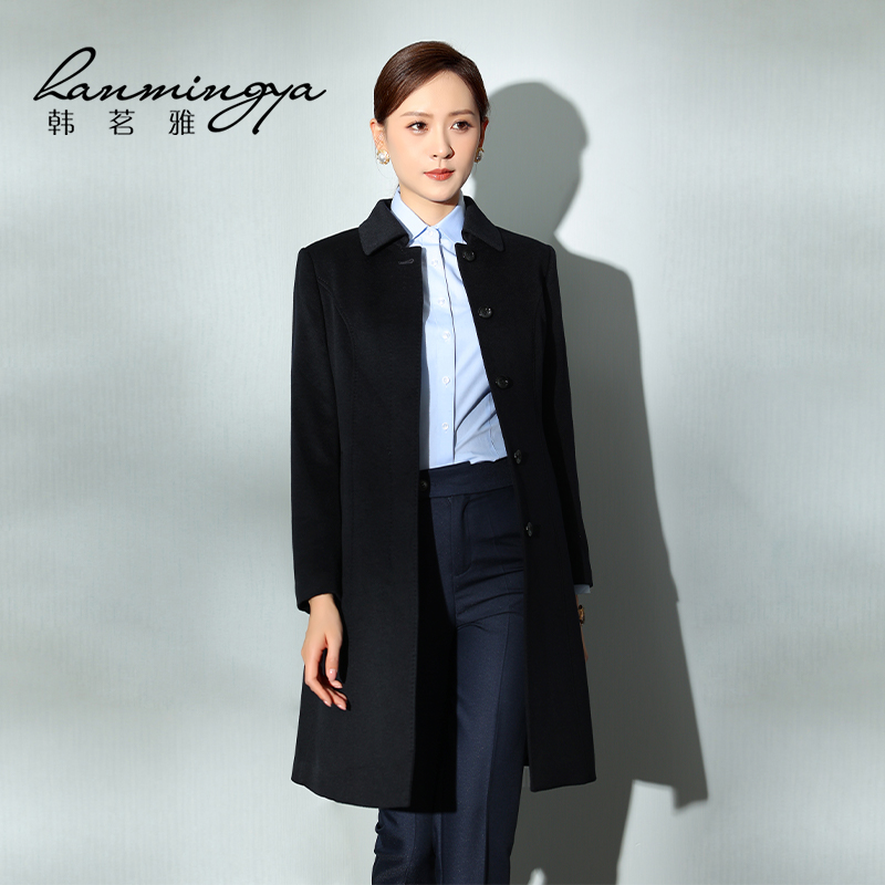 韩茗雅职业装呢子大衣女冬黑色中长款物业银行工作服毛呢外套工装