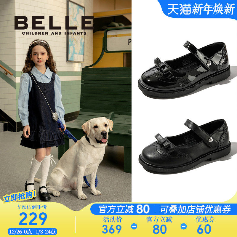 百丽童鞋女童黑皮鞋2025秋冬新款儿童演出鞋小女孩学生礼仪小皮鞋