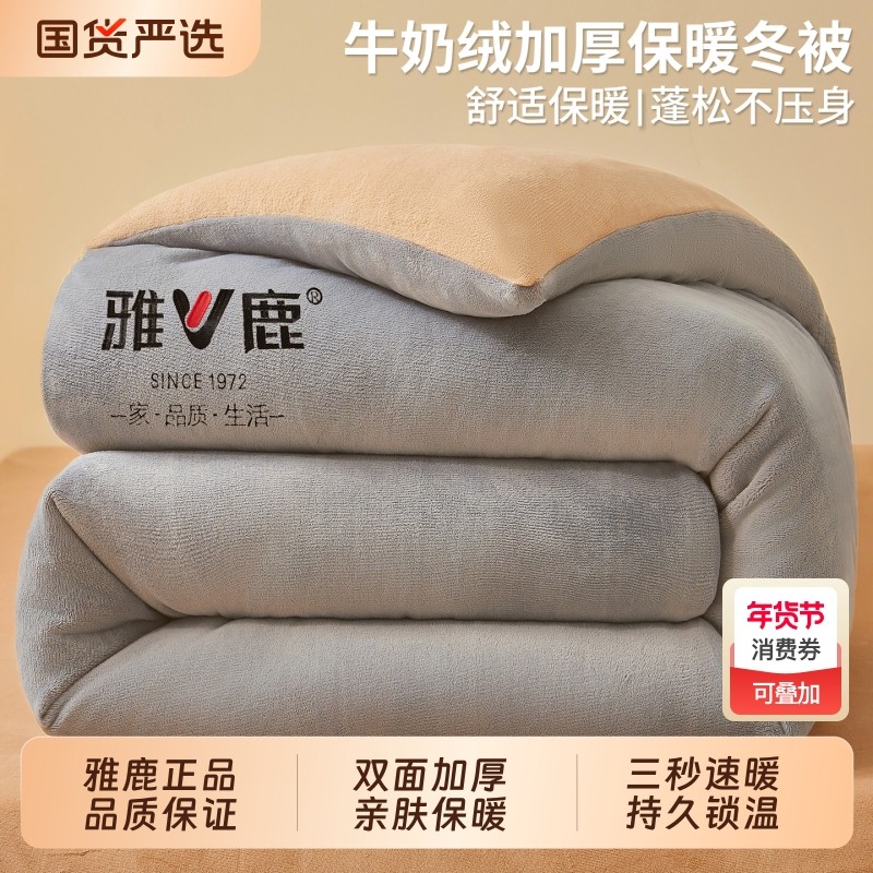 雅鹿牛奶绒被子被芯冬被冬季加厚保暖棉被学生宿舍单人2025新被褥