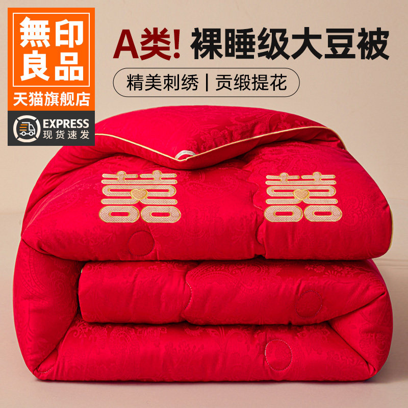 无印良品大豆纤维被子被芯冬被贡缎婚庆红色喜被加厚保暖春秋被褥