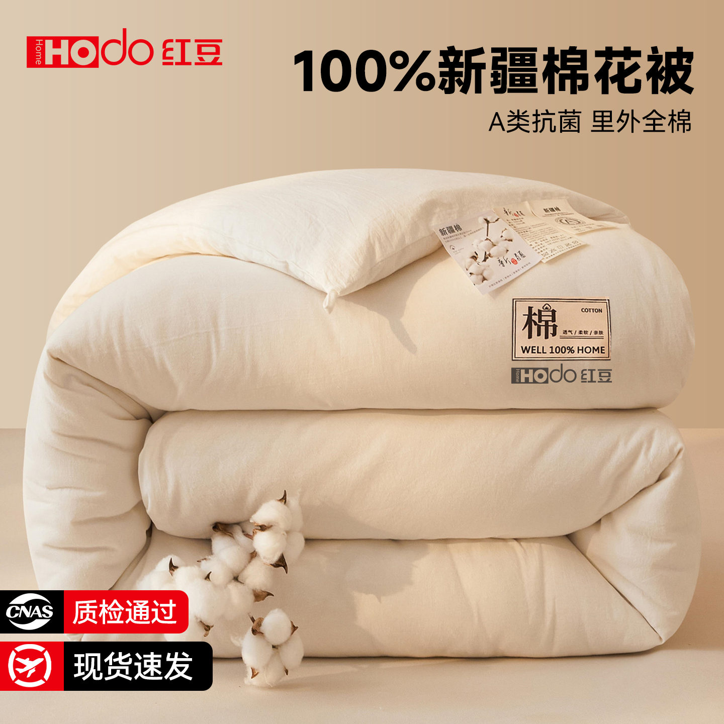 红豆新疆纯棉花被子被芯冬被里外全棉棉被保暖单人宿舍春秋被四季