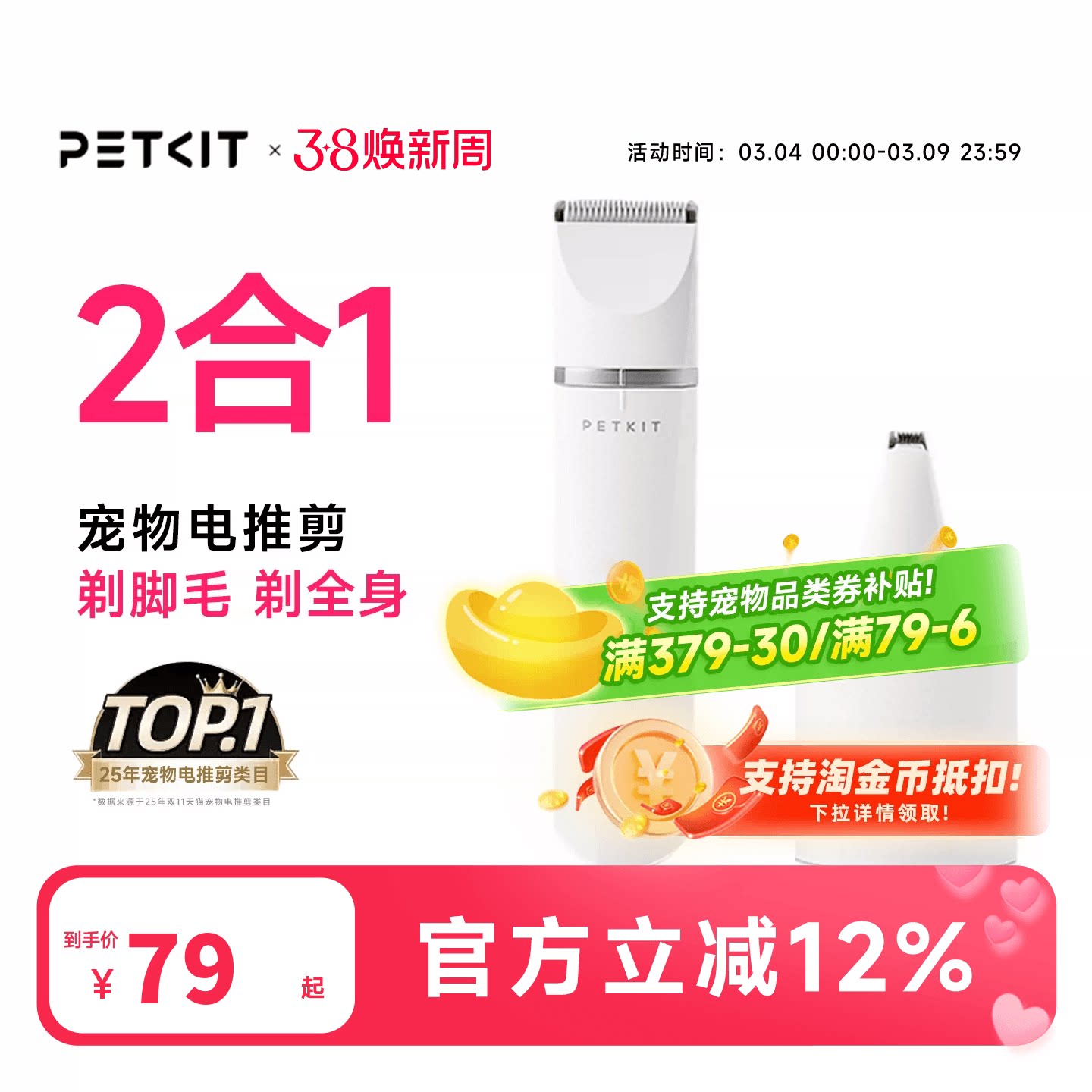 PETKIT2合1宠物剃毛器宠物电推剪狗狗剃毛器猫咪剃脚毛器剪毛神器