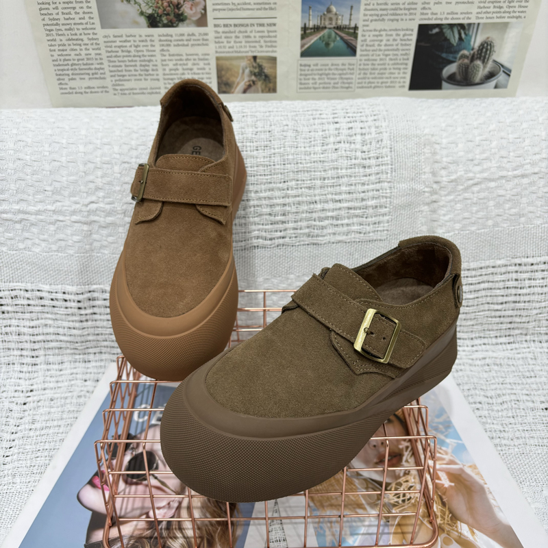 SGIRL TWTW原宿风面包勃肯鞋2025新款轻软牛反绒厚底大头鞋两穿女