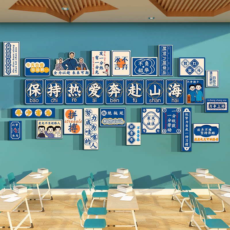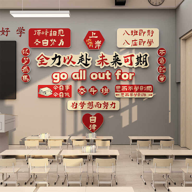 班级文化墙贴纸教室布置装饰托管班初中自习室黑板报励志培训机构