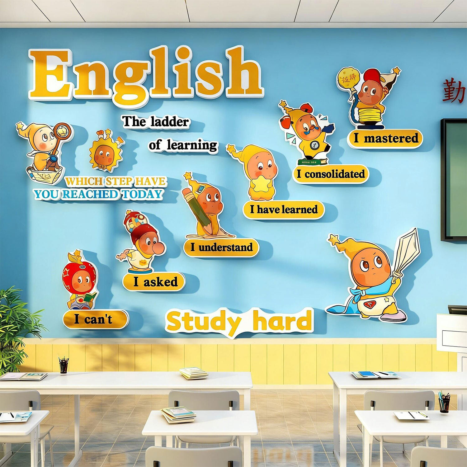 班级文化墙面贴纸英语教室氛围布置装饰形象星人主题环创励志标语