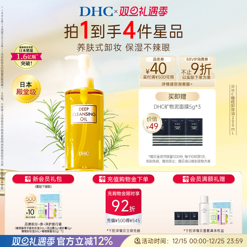 【自营】DHC蝶翠诗橄榄卸妆油卸妆水200ml*2油皮温和去黑头去角质