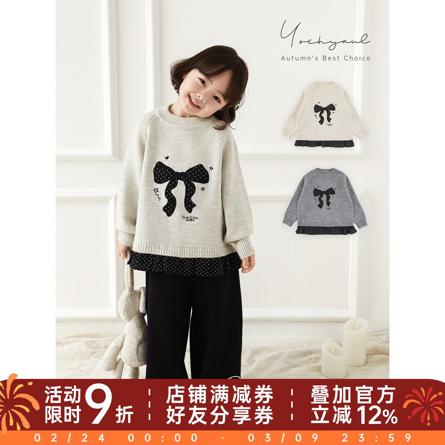 米米哈罗女童针织衫冬装2025新款儿童假两件上衣女孩宽松套头毛衣