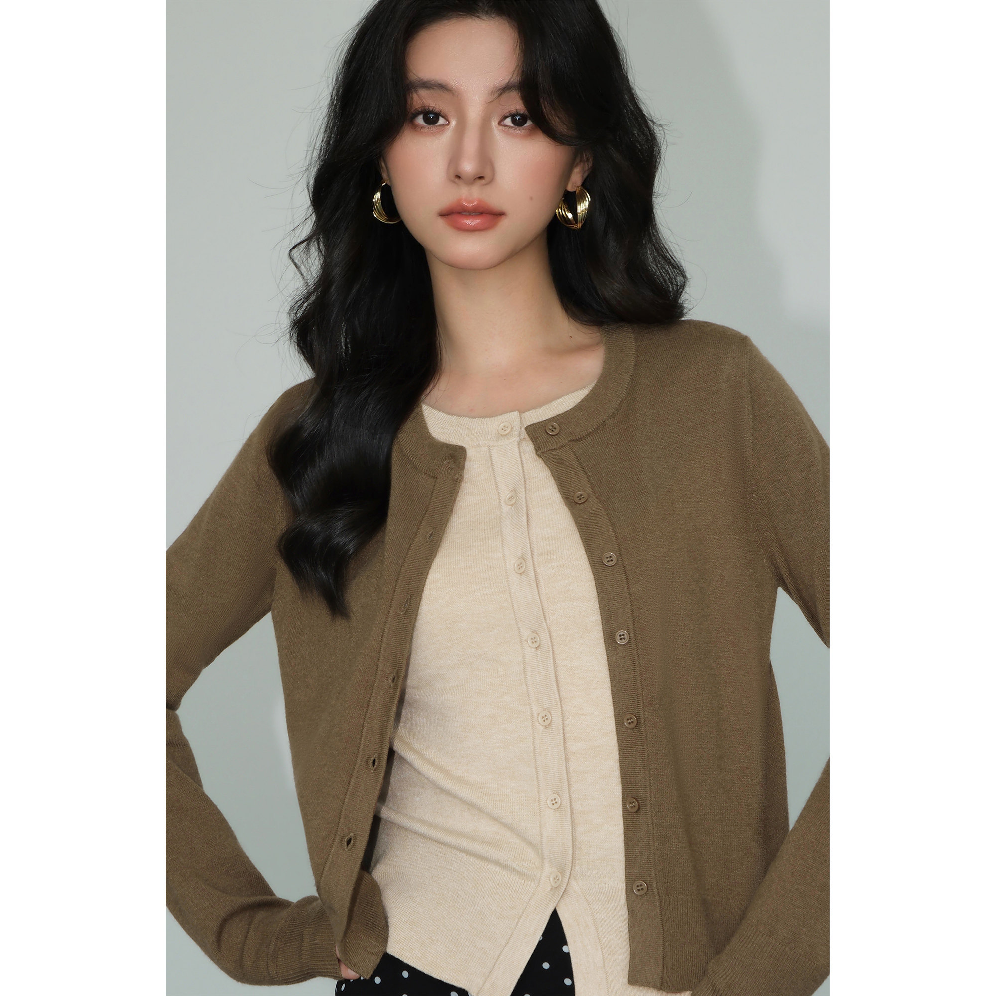 【正品清仓】圆领假两件羊绒针织开衫外套女春秋新款宽松毛衣外搭