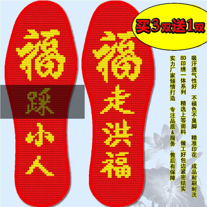 [买3送1]加厚十字绣花针孔鞋垫印花走洪福棉线吸汗透气本命年红色