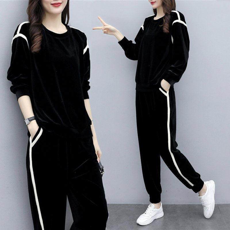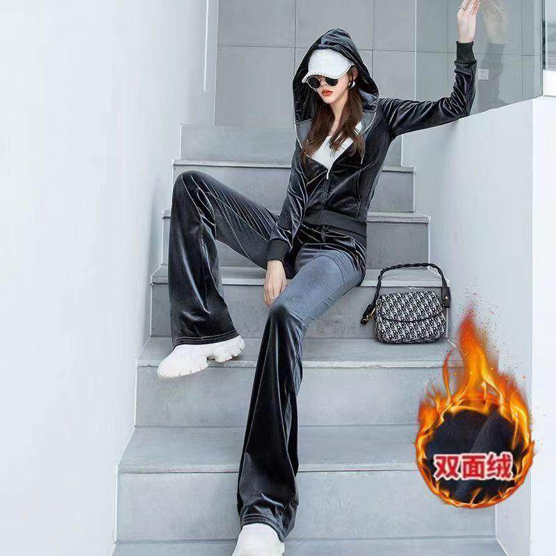 - 金丝绒加绒加厚套装女