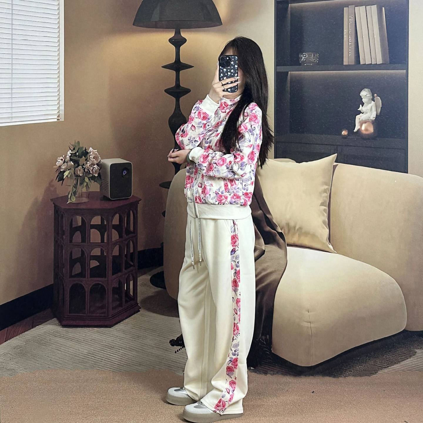 liviahome美式辣妹丝绒运动休闲套装女秋冬新款上衣长裤两件套