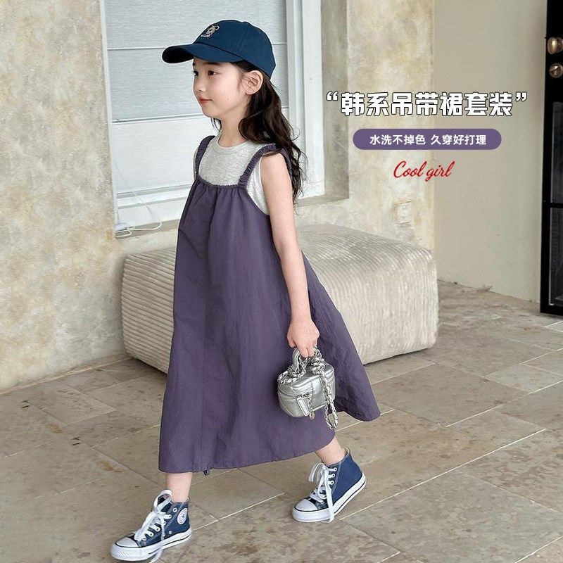 女童连衣裙套装夏款2025新款儿童韩版吊带裙小女孩洋气两件套裙子
