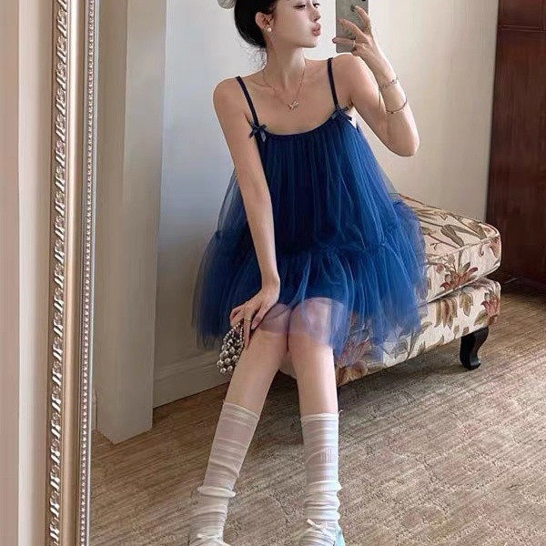 2025夏季吊带裙纯欲风多巴胺爆款韩版洋气超仙网纱蓬蓬仙女短裙女