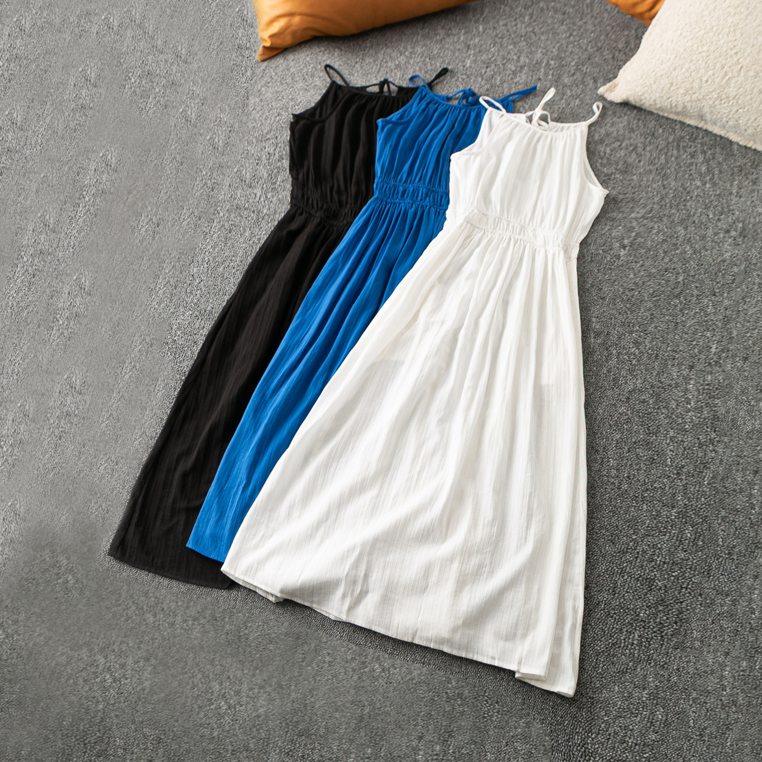 2025夏季新款韩版收腰显瘦气质简约无袖中长裙时尚吊带连衣裙