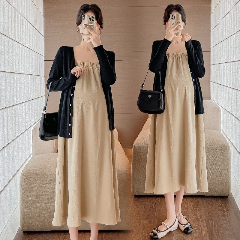 孕妇装春装长袖开衫韩版吊带裙春季两件套连衣裙套装裙子春孕妇裙