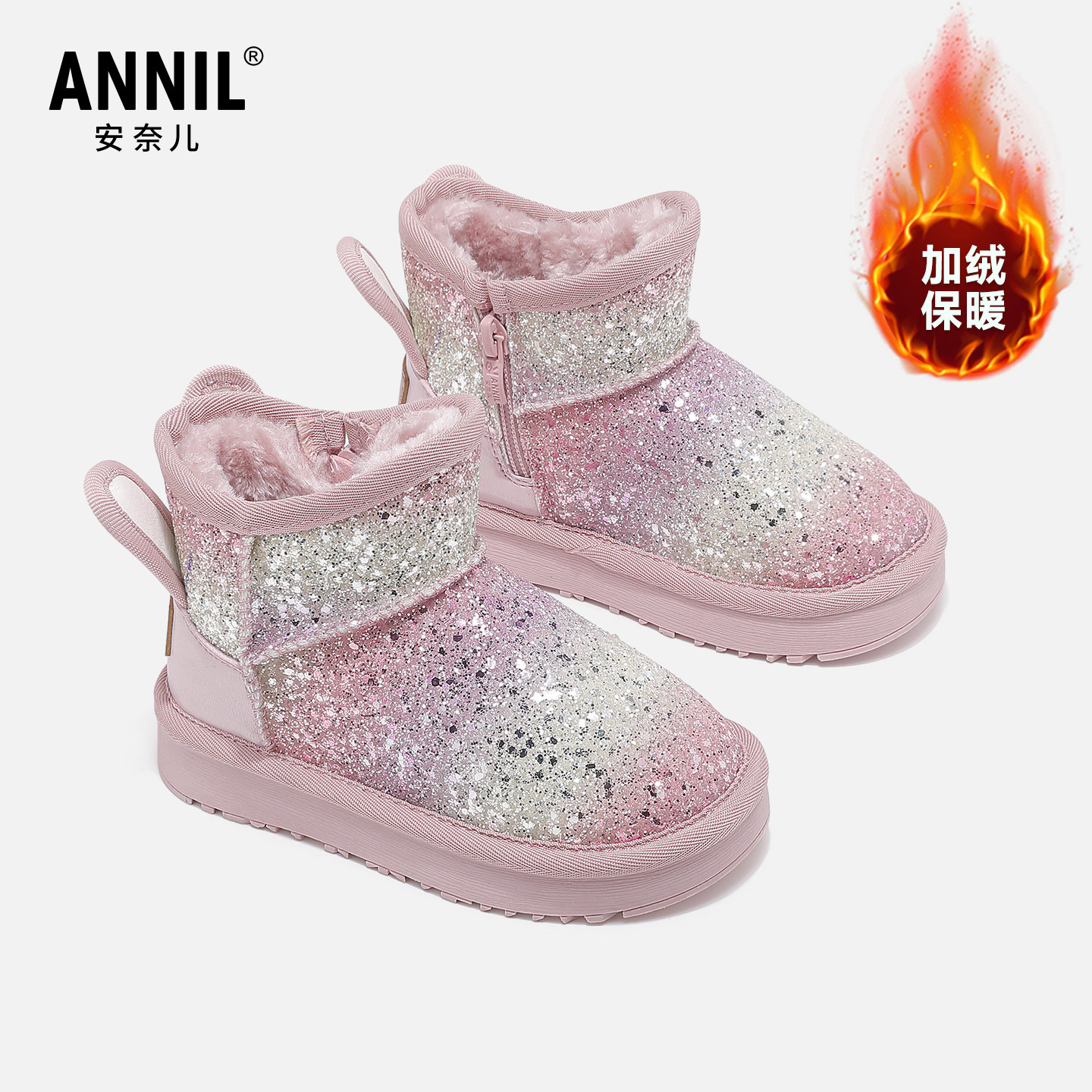 安奈儿女童雪地靴女款2025新款冬季加绒加厚冬鞋女孩棉鞋儿童靴子