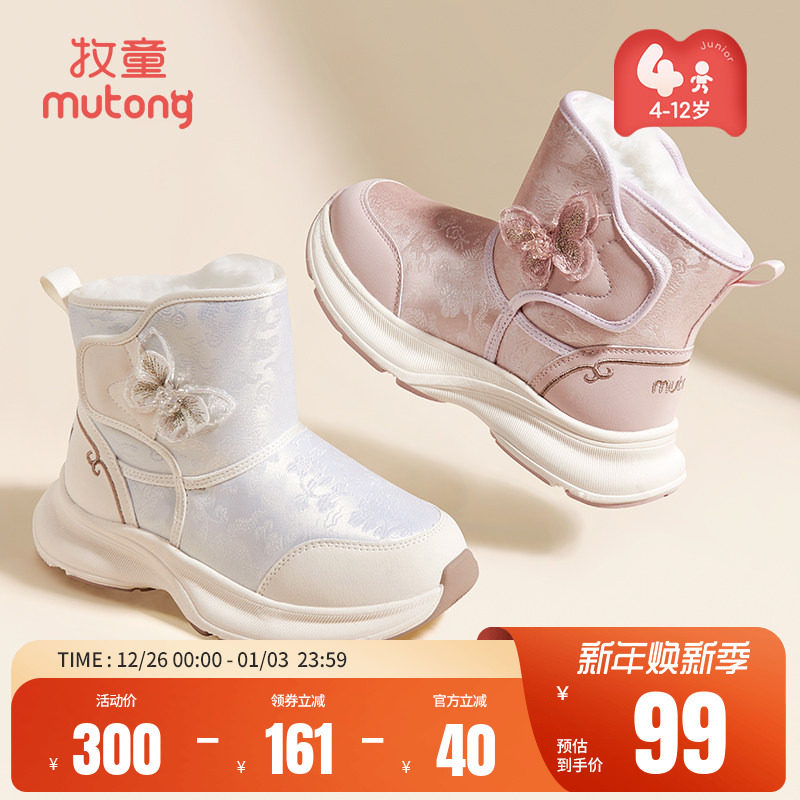 牧童女童雪地靴冬季新款儿童加绒加厚大棉靴子小女孩保暖公主棉鞋