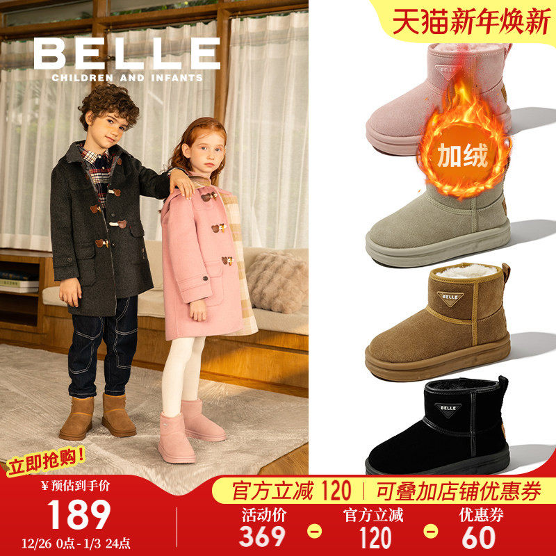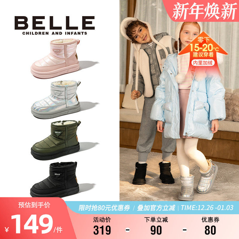 百丽童鞋女童雪地靴冬季加绒保暖时尚短靴男童大棉靴舒适宝宝靴子