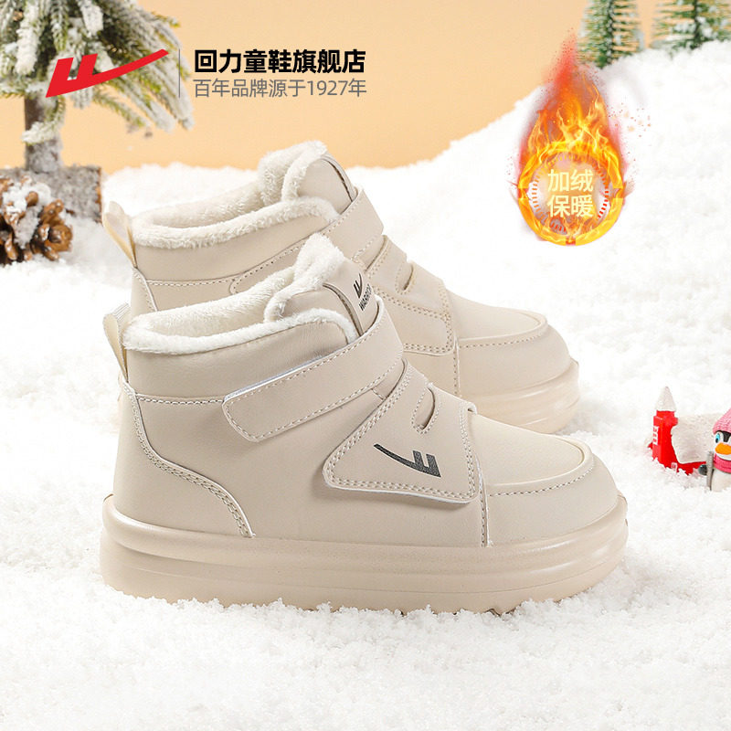 回力儿童棉鞋2025冬季新款防水男童皮靴大童棉靴子加绒女童雪地靴