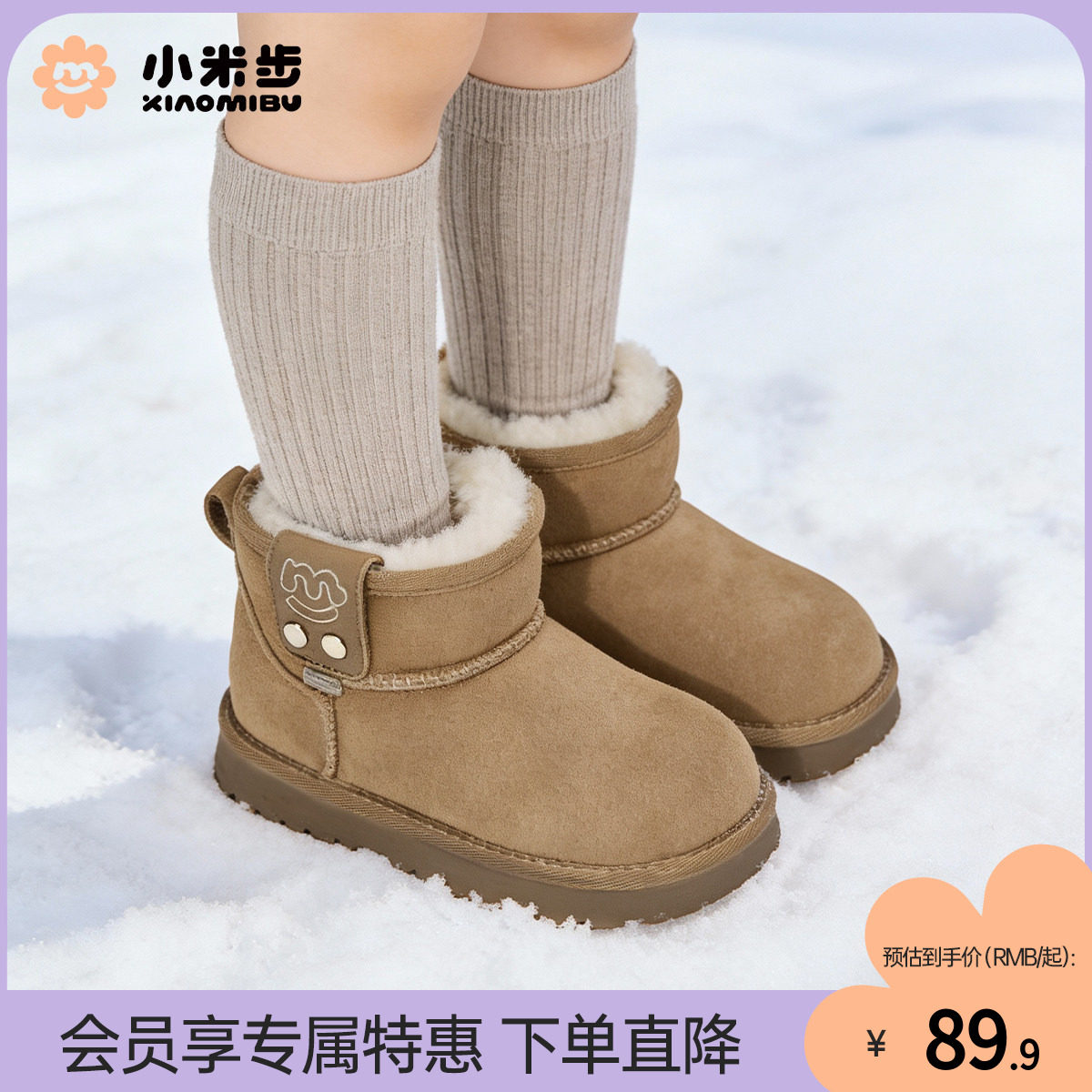 小米步女童雪地靴2025冬季新款儿童加绒棉鞋男童保暖棉靴中大童