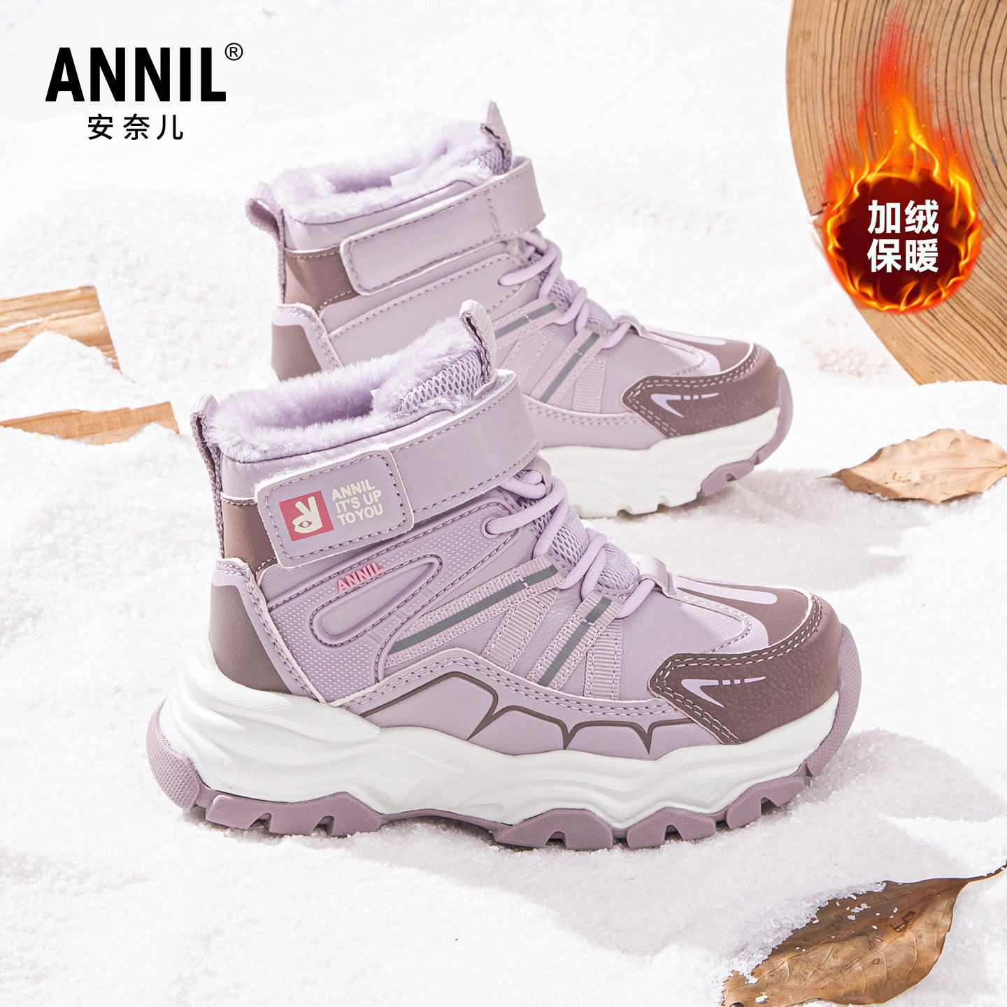 安奈儿女童雪地靴冬季2025新款加厚防水大童女孩加绒鞋子儿童棉鞋