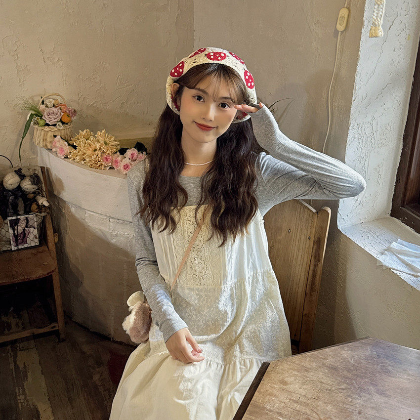 日系甜美蕾丝花边娃娃领连衣裙森系叠穿内衬裙仙女白色打底裙长裙