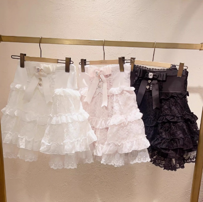 Meowchan再入荷日系量产型软妹甜美可爱蓬蓬蝴蝶结荷叶边半裙短裙