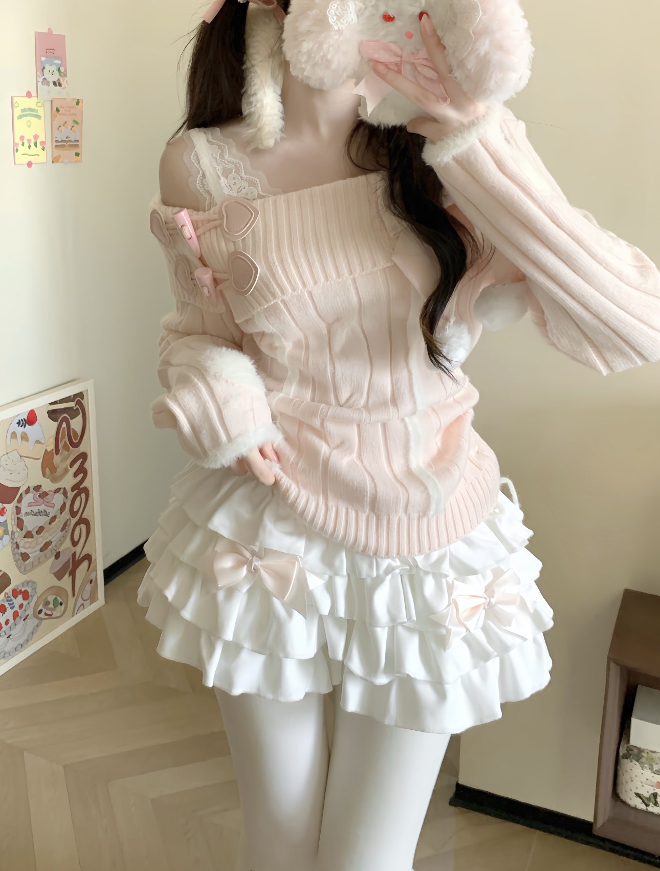 原创日系软妹可爱兔耳朵短袖女+纯欲芭蕾风甜妹蛋糕裙蓬蓬半身裙