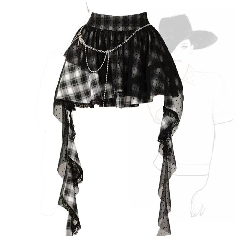 大码日系软妹半身裙女四季不规则设计感拼接纱裙亚文化胖mm辣妹裙