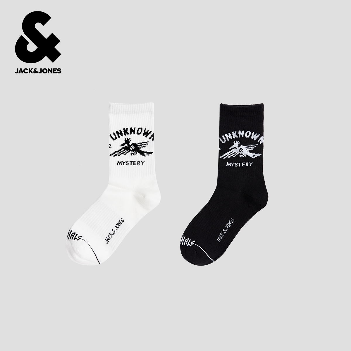 杰克琼斯男秋季袜子2025年新款黑白撞色个性提花字母舒适棉两双装