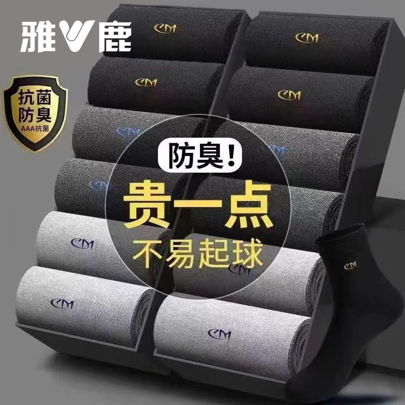雅鹿春秋季抗起球吸汗男士透气中筒袜四季款防臭秋冬男款潮运动袜