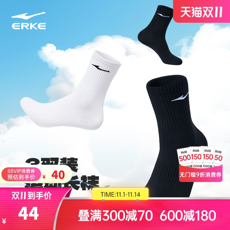 于适鸿星尔克袜子男秋季3双男士长袜男生运动篮球袜透气跑步中筒