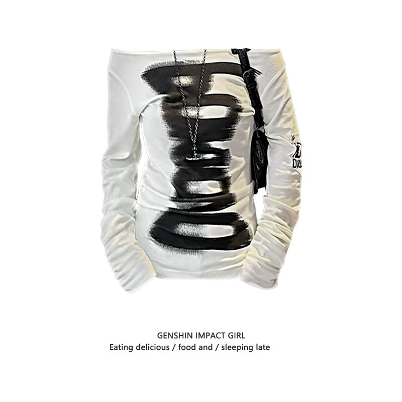 小众~设计感不规则长袖T恤女韩版春秋打底衫修身一字肩露肩上衣潮