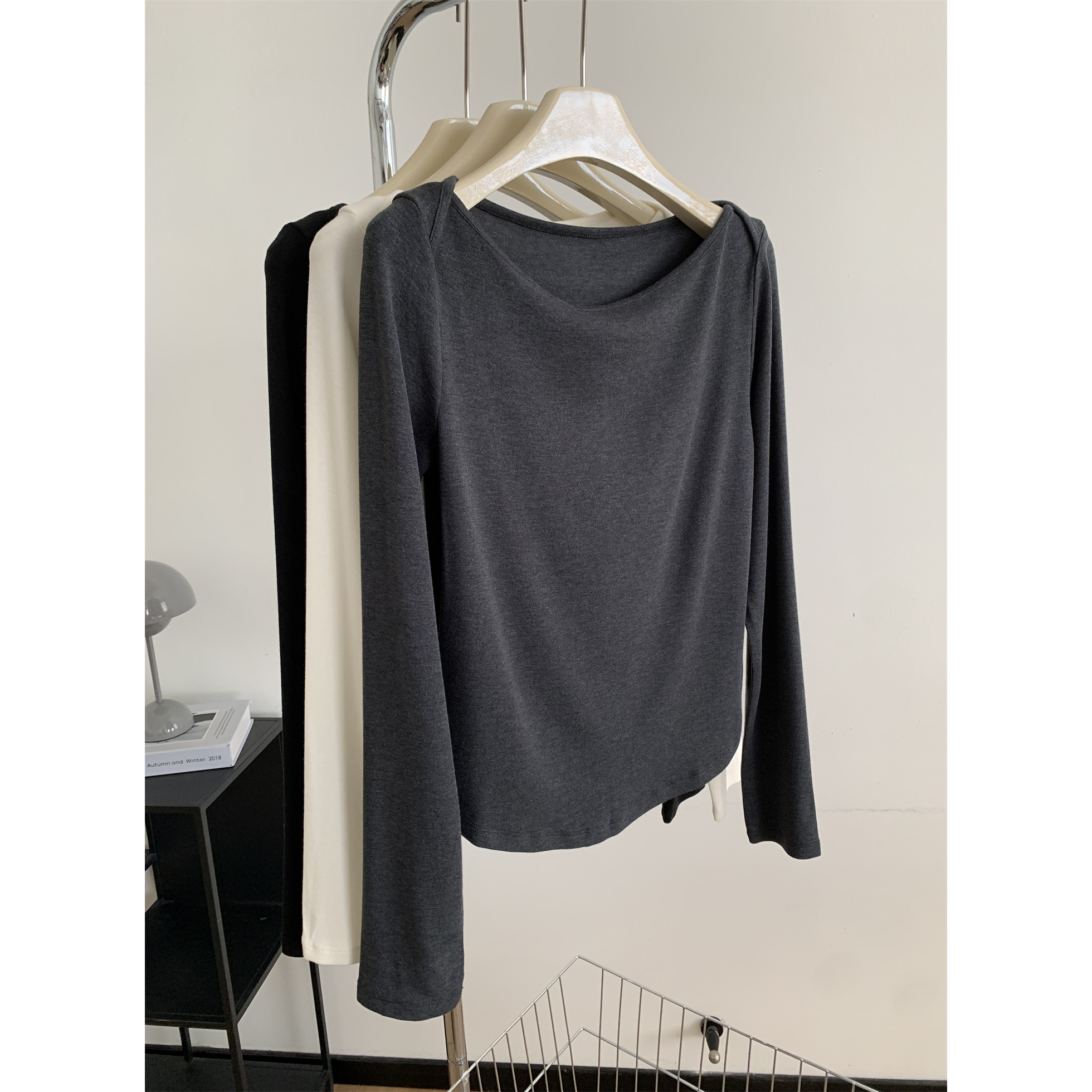 ONE11999一字领斜肩长袖T恤软糯百搭韩版显瘦女上衣秋季新款ono
