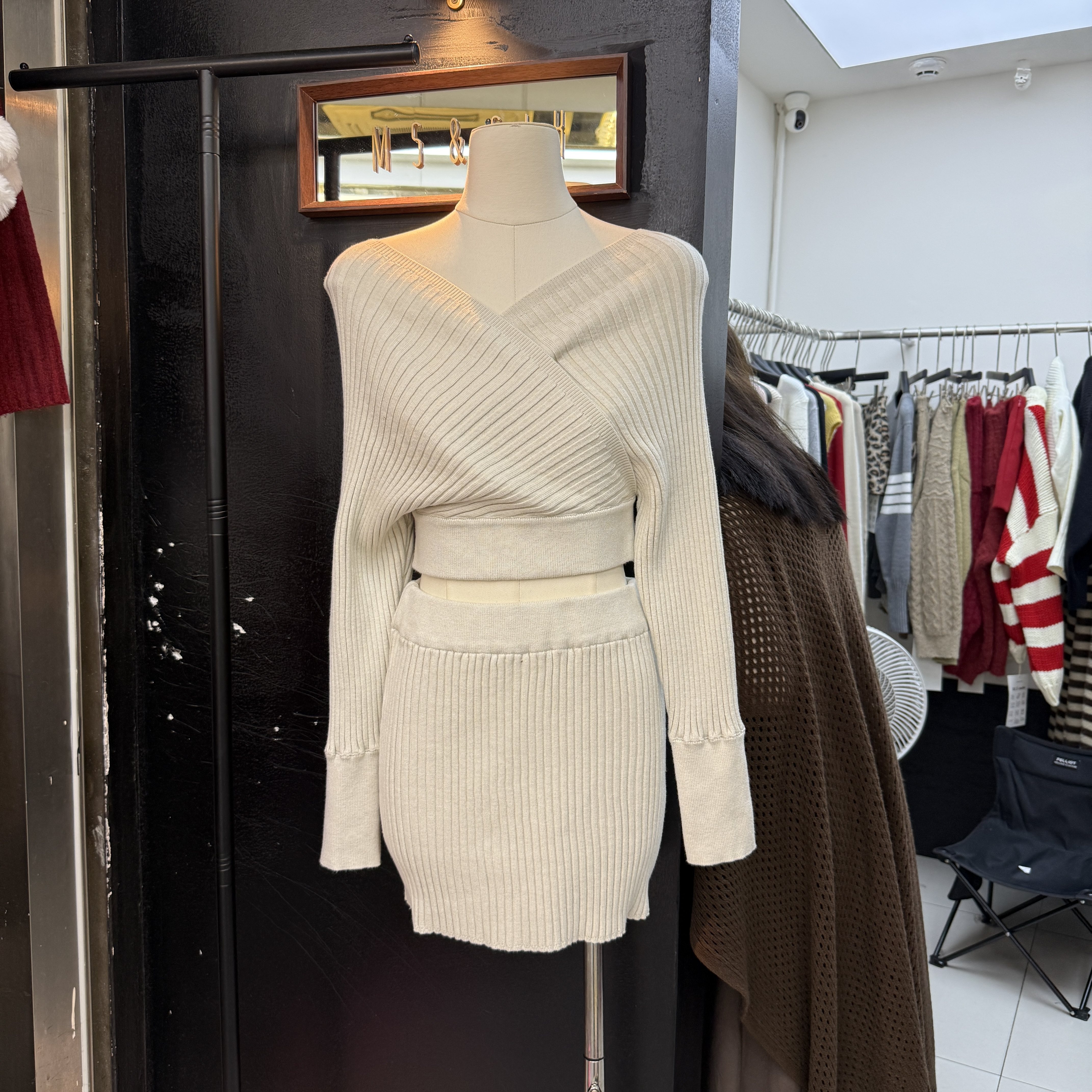 十三行拿货2025冬季新款韩版一字肩上衣包臀半身裙套装k68929w178
