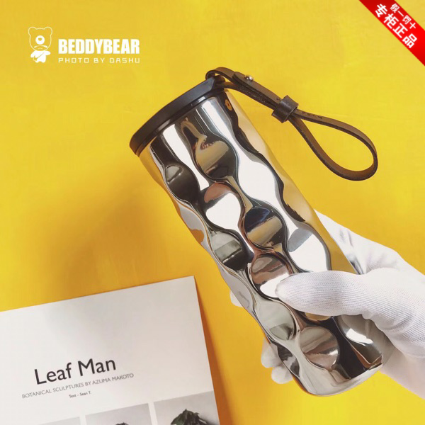 韩国杯具熊ins曲镜保温杯曲面商务波浪保温杯水杯带提绳时尚潮人