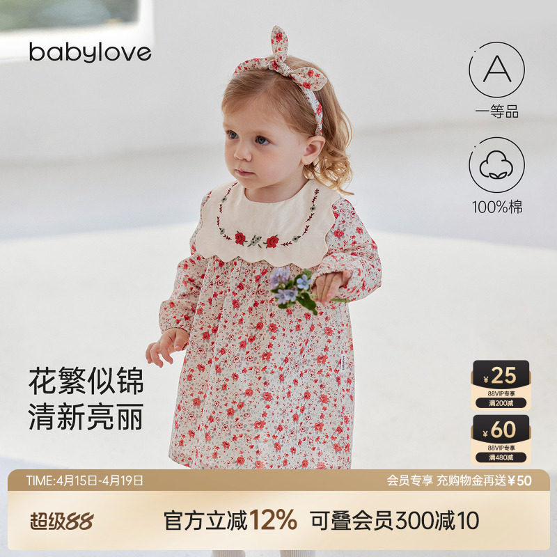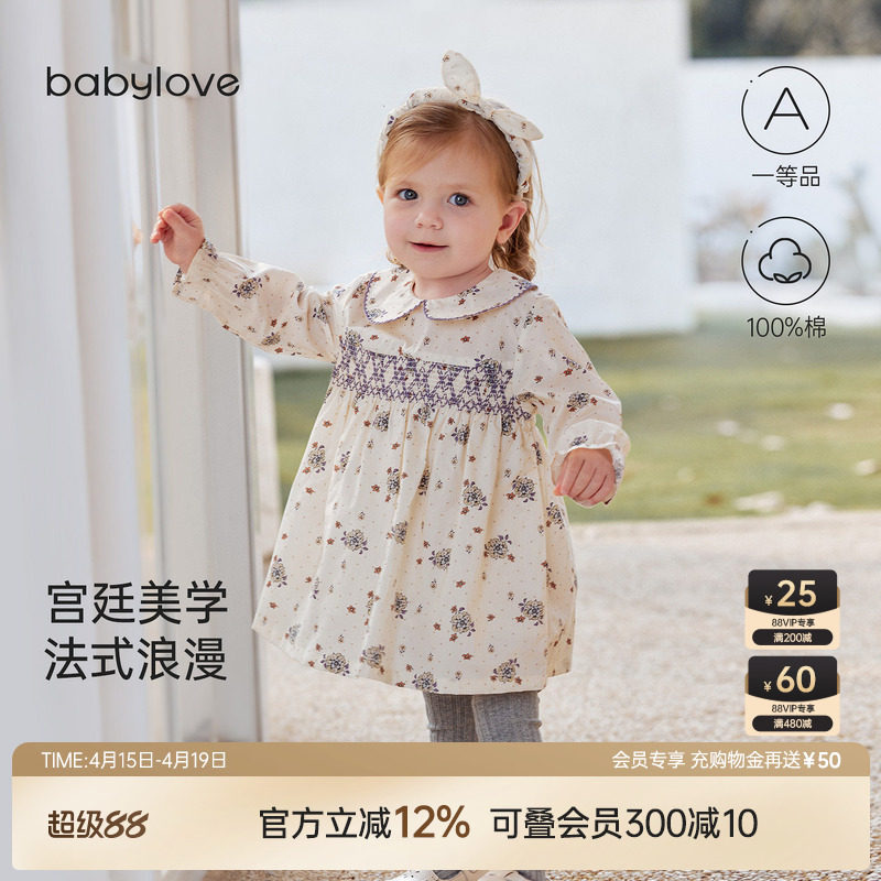 babylove【安心柔】女宝宝连衣裙春秋纯棉婴儿法式裙子觅寻花畔